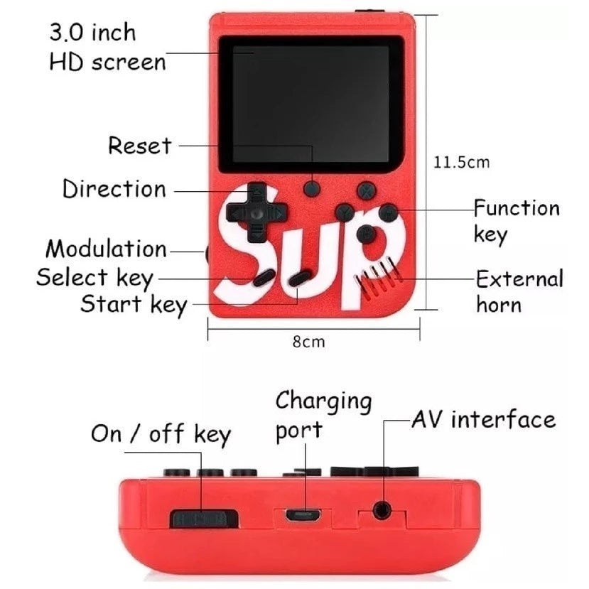 Ja vem instalado 400 jogos na memória interna, exemplos: Super Mario, Mario 3,Turtles 4, Contra, Double Dragon, Spider Man, Aladdin 3, Bomberman, DonKey Kong, Pac-Man entre outros Títulos . Não precisa de instalar emulador e nem configurar , Game ja vem com games instalados e prontos para Brincar.